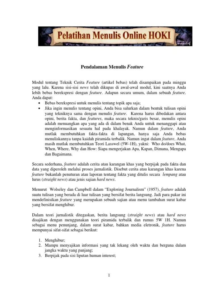 contoh berita langsung (straight news) dan berita kisah (feature) saya kutipkan dua buah berita dari kompas, 25 februari 2010 tentang musibah tanah longsor di desa tenjolaya, jawa barat. Bagian ini biasanya sisipan dan bukan untuk berita utama. Soalan geografi tingkatan 6 penggal 1. feature biografi (menceritakan kisah hidup seseorang yang terkenal). feature berita adalah sebuah berita yang ditulis dalam bentuk feature, dan pemuatannya terikat dengan waktu.