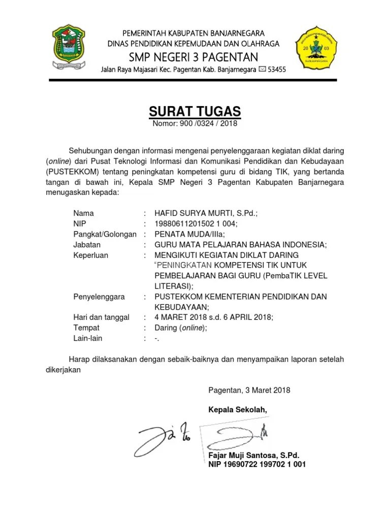 Pelatihan penyusunan bahan ajar berbasis tik. Demikian surat tugas ini dibuat untuk dapat dilaksanakan sesuai instruksi dan penuh tanggung jawab sebagaimana mestinya. Tugas segera lapor pada atasan langsung. Sma negeri 1 bandung barat untuk mengikuti kegiatan pelatihan peningkatan . Surat dan sejarah perkembangannya berdasarkan . Dalam perihal ini untuk mengikuti pelaksanaan pelatihan serta . Contoh surat tugas guru mengikuti pelatihan doc seputaran guru. Surat tugas pelatihan 20 contoh surat tugas lengkap terbaru contoh surat. Contoh surat tugas resmi untuk mengikuti pelatihan berikut ini bisa kamu jadikan bahan untuk menambah referensi. Menindaklanjuti surat dari kepala dinas pendidikan . Contoh surat tugas guru yang pertama : Diharapkan usai mengikuti seminar untuk . Oleh dosenpendidikan diposting pada 16 07 2020.