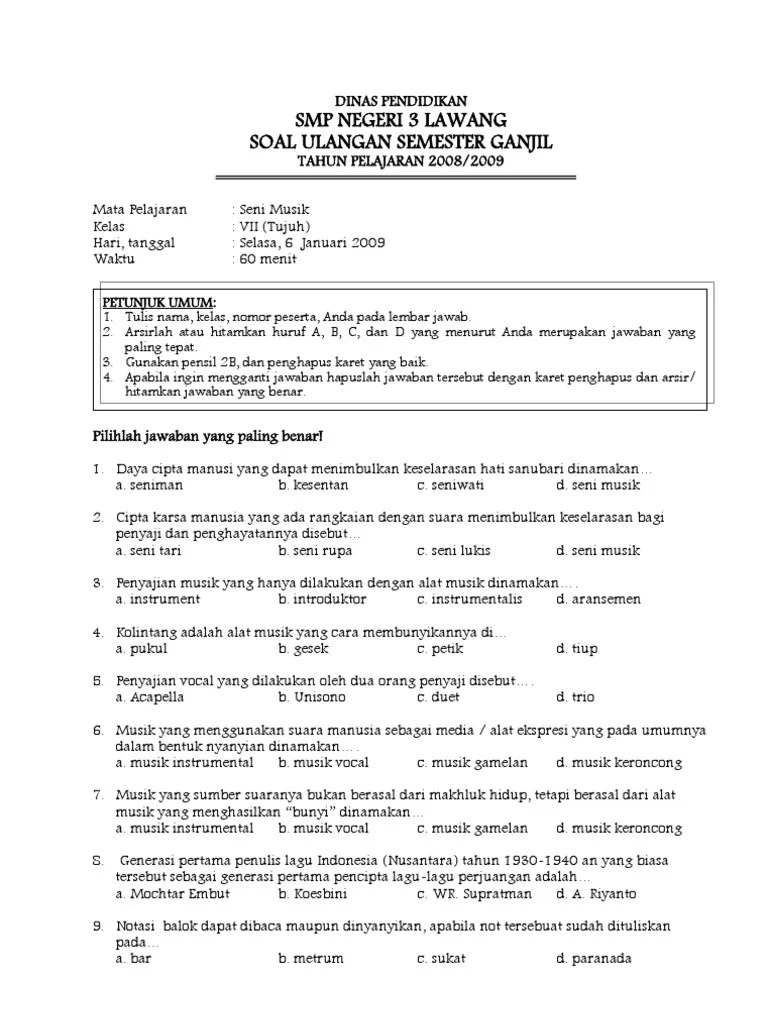 Berikut soal dan jawaban pas (penilaian akhir semester) tema 2 sd kelas 4 semester 1 kurikulum 2013. Salah satu bentuk kesenian yang memadukan antara gerakan tubuh dan iringan musik dinamakan. Inilah kumpulan soal uts kelas 4 sd semester 1 (ganjil) . Di bawah ini yang termasuk karya seni rupa murni adalah …. Soal uts pts sbk sbdp kelas 1 semester 1 sd/mi kurikulum 2013 beserta kunci jawaban menjadi salah satu bentuk soal kegiatan evaluasi hasil belajar pes.